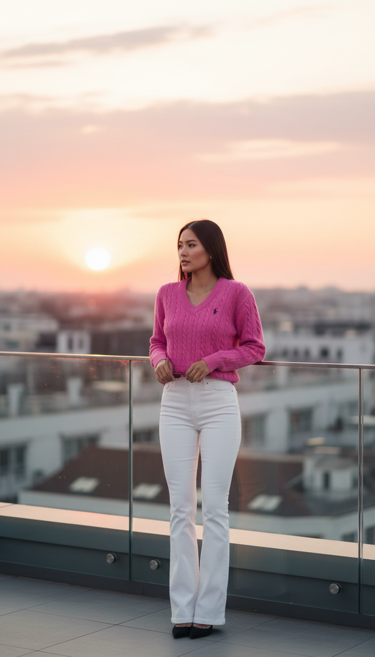 Whether styled for the office, city walks, or relaxed evenings, this versatile pink sweater is a must-have essential for modern women.
