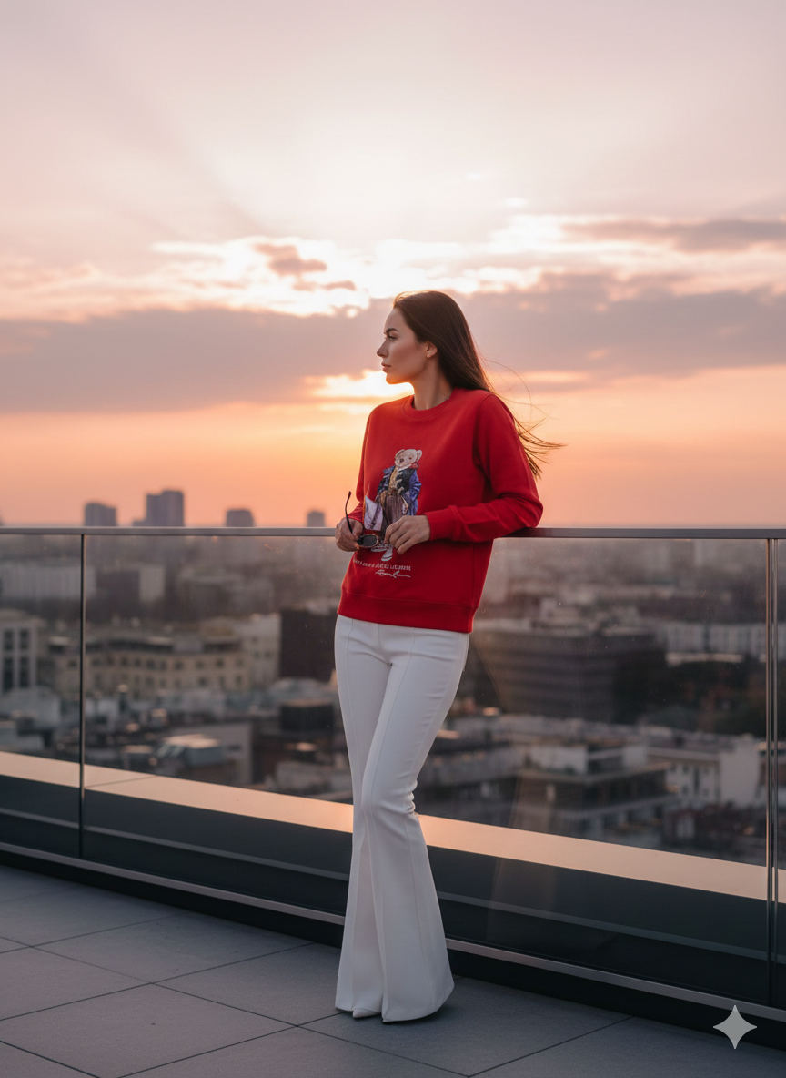 Ralph Lauren Polo Red Bear Fleece Crewneck Sweatshirt for Women – Classic Luxury Casual Wear - M